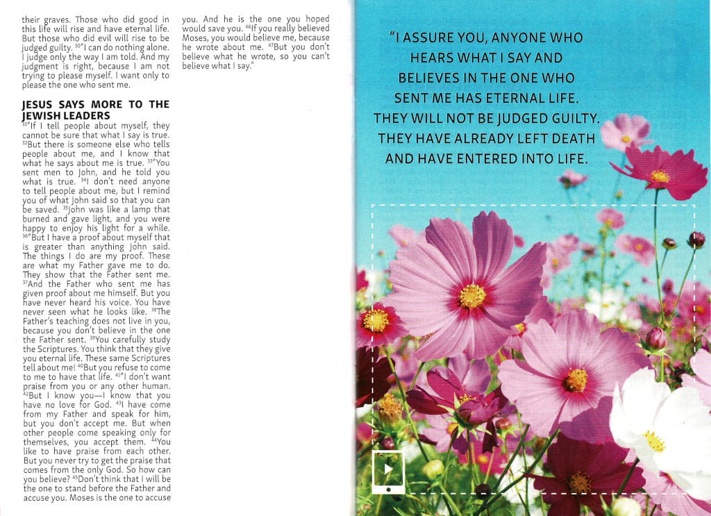 Am Anfang des Johannes-Evangeliums gibt es eine kurze Anleitung, wie man die dazugehörige App herunterladen kann. In dieser kann man kleine Ausschnitte aus dem Johannesevangelium-Film (2003) passend zu den einzelnen Kapiteln ansehen.