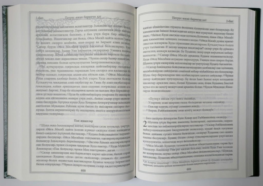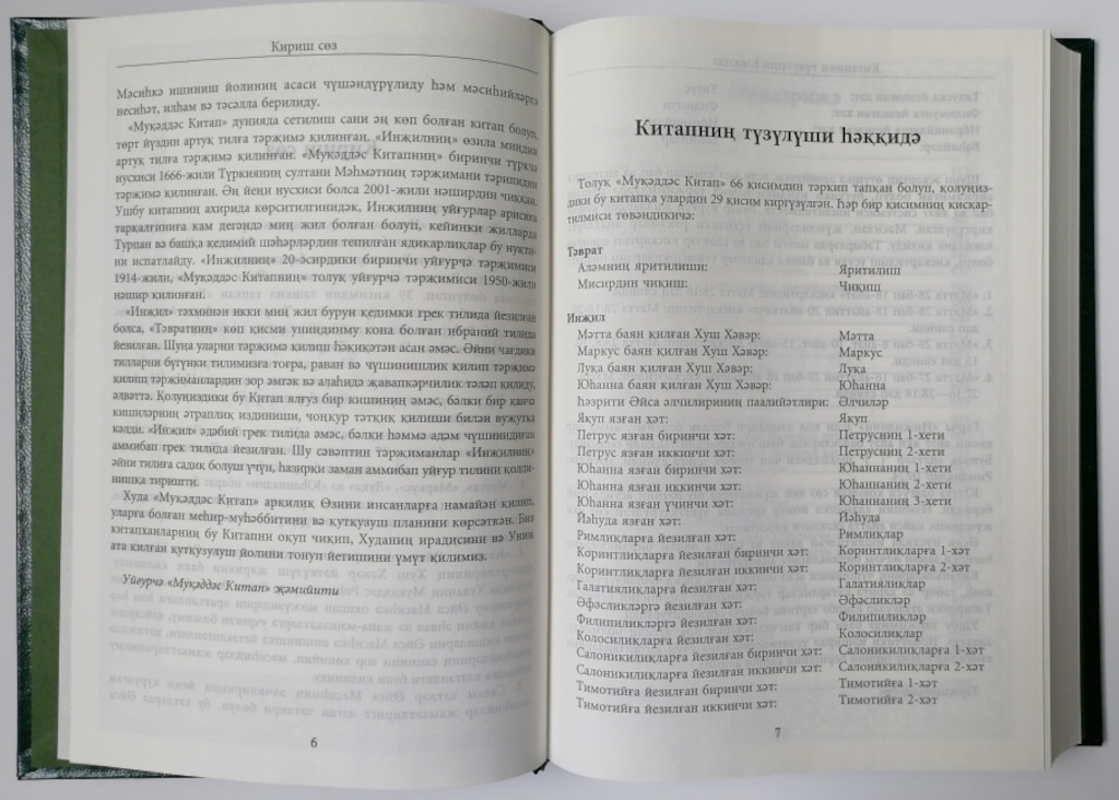 Die Bibel in Uigurisch in kyrillischer und arabischer Schrift als PDF, Hörbibel und Onlinebibel.