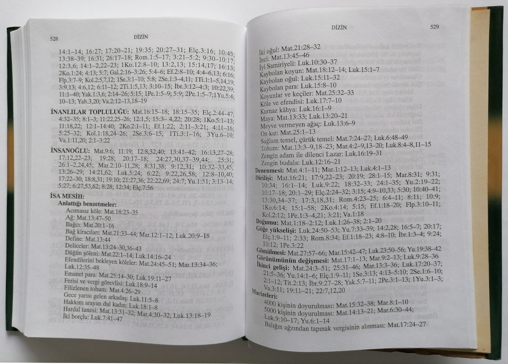 Mit sieben Seiten mehrfarbigen Karten, zehn Seiten Wortverzeichnis, 23 Seiten Konkordanz und einem Verzeichnis der Parallelstellen der vier Evangelien.
