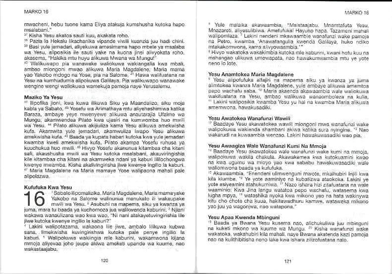 Zeitgenössische Fassung des Evangeliums. Der hier verwendete Suaheli-Dialekt wird vorrangig in Tansania gesprochen.