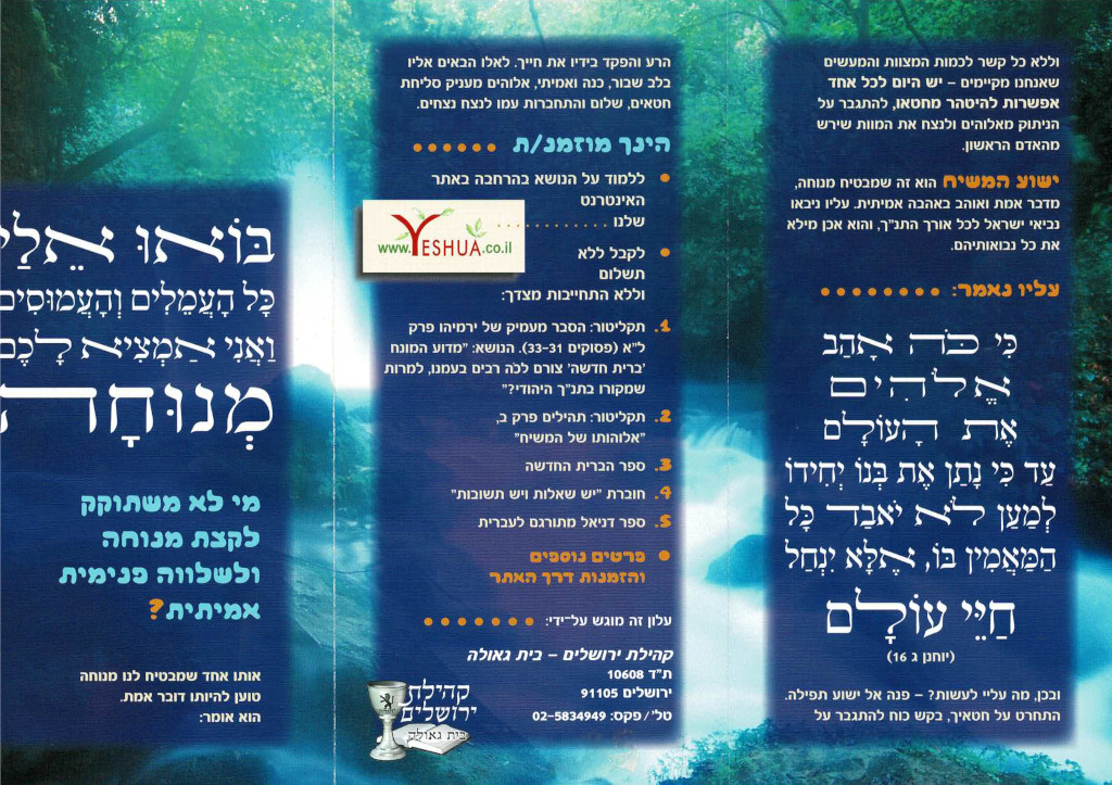 Traktate in Hebräisch mit den Titeln: - Der Weg zum Heil - Ich werde euch Ruhe geben... mehr