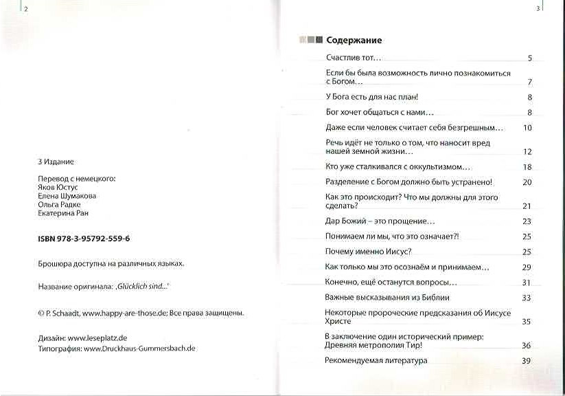 Aus dem Inhaltsverzeichnis: „Gott hat einen Plan für uns“ – „Gott möchte mit uns kommunizieren“ - „Warum gerade Jesus?“ – „Wichtige Aussagen der Bibel“ – „Sicherlich gibt es noch Fragen...“