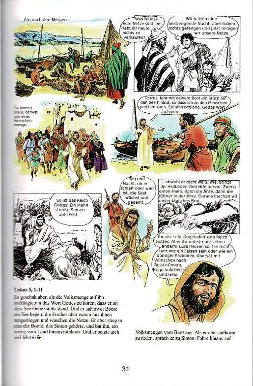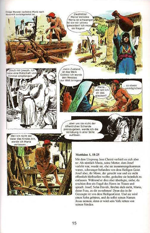 Das Leben Jesu in Comic. 34 Geschichten aus dem Neuen Testament detailliert wiedergegeben, von seiner Geburt bis zu seiner Auferstehung.