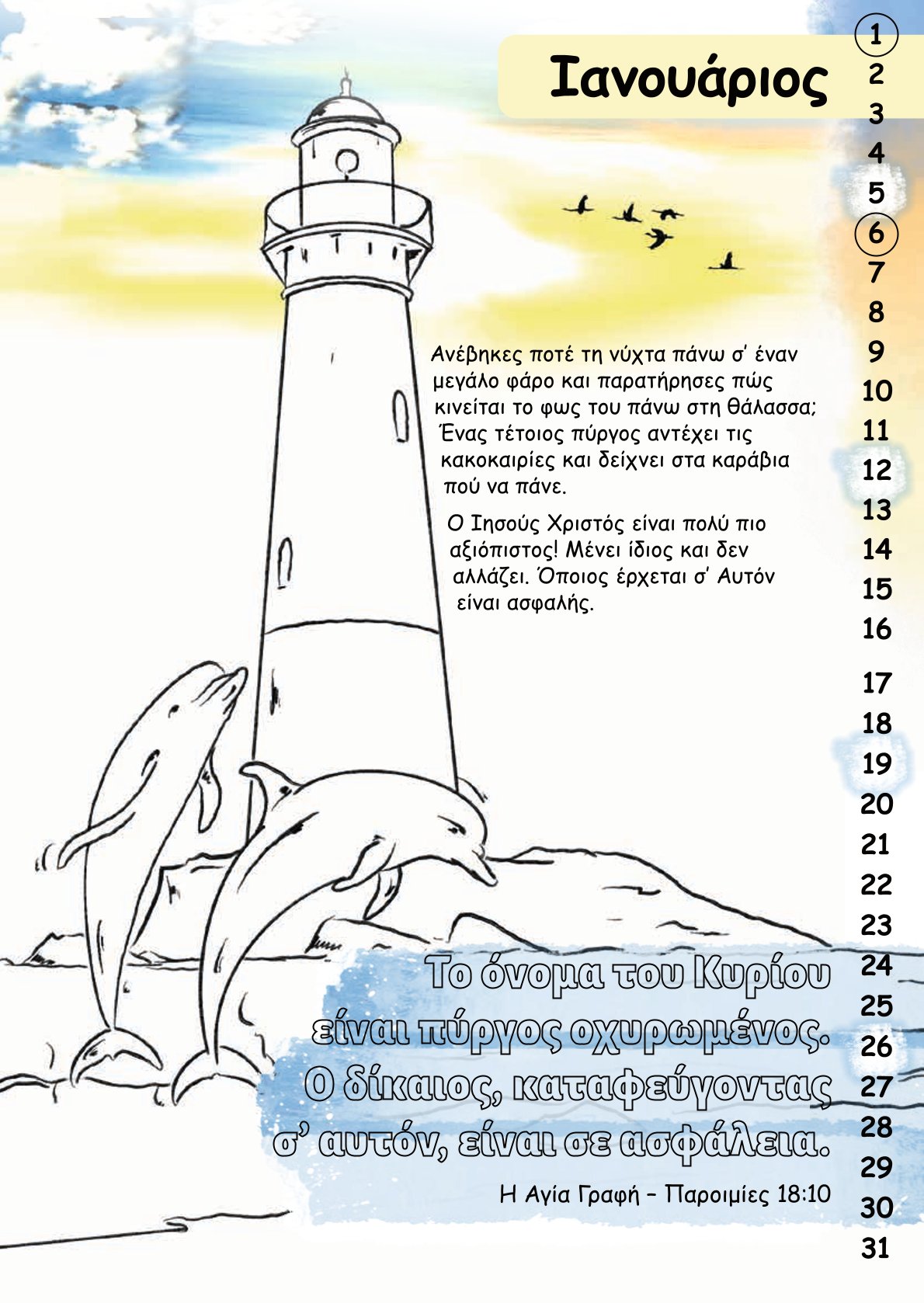 Der Malkalender Mit Stift und Bibel enthält für jeden Monat einen Bibelvers mit einem thematisch dazu passenden Bild zum Ausmalen.