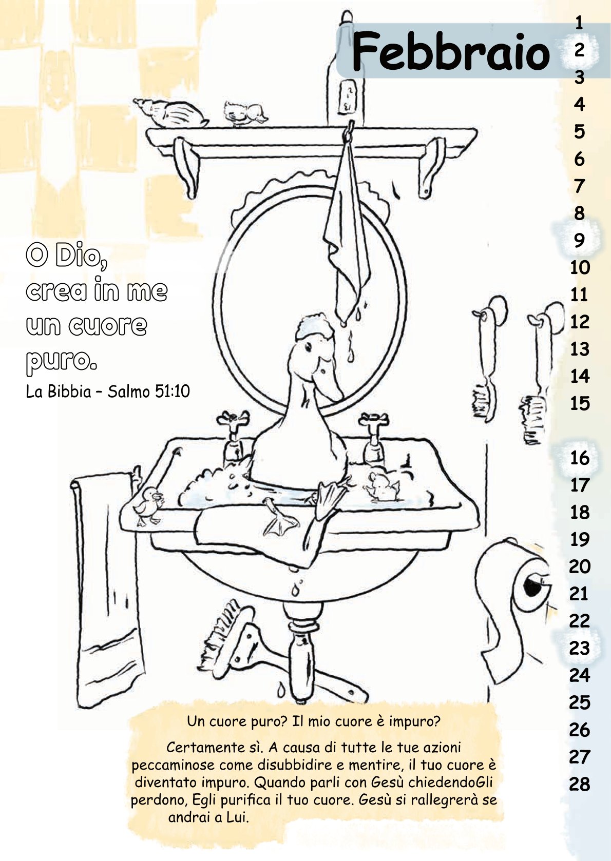 Der Malkalender Mit Stift und Bibel enthält für jeden Monat einen Bibelvers mit einem thematisch dazu passenden Bild zum Ausmalen.