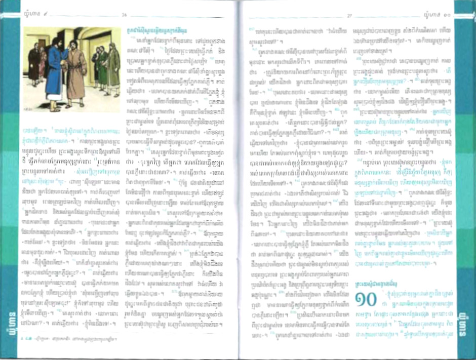Das Johannesevangelium in Kambodschanisch (Khmer), mit kleinen Grafiken.