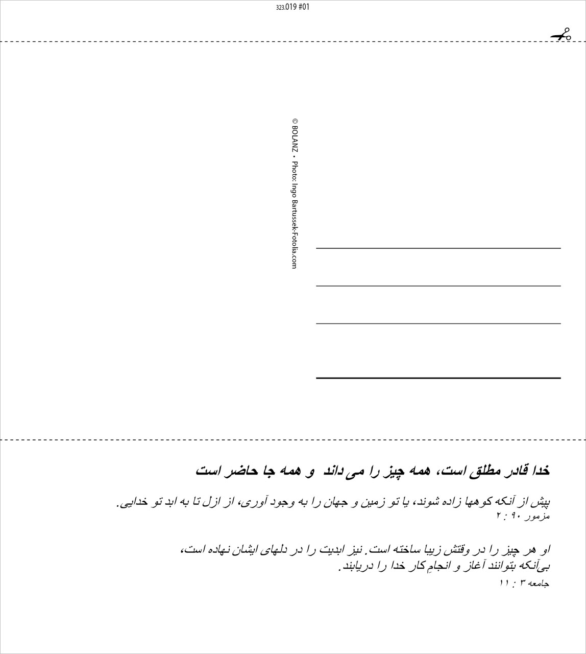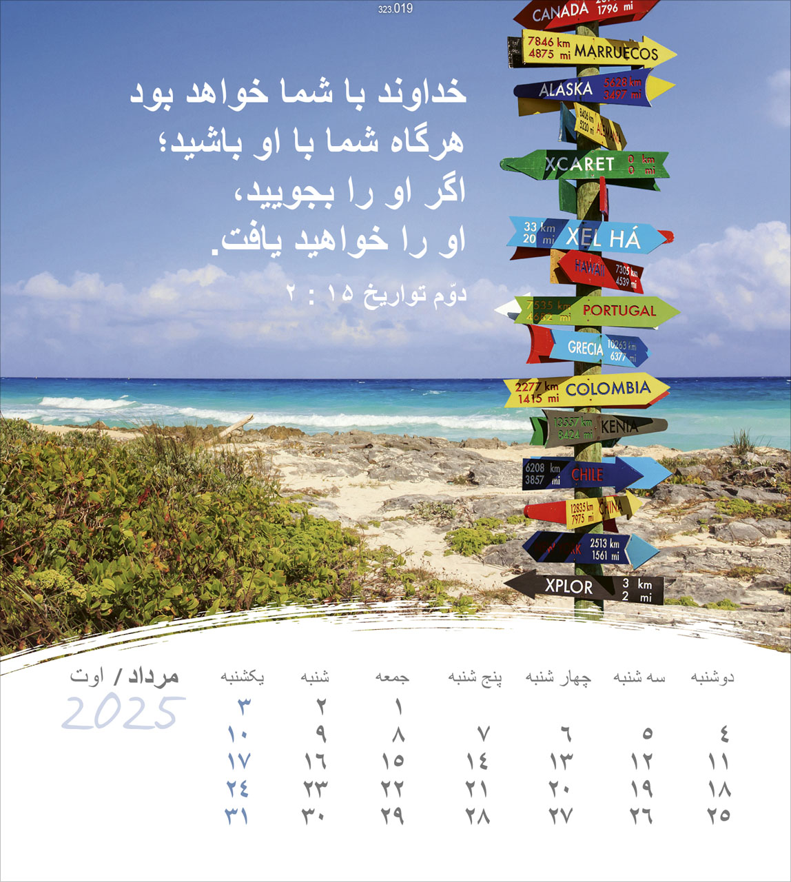 Postkartenkalender Leben für Dich 2025 in Persisch/Farsi. Mit ansprechenden Bildern und passenden Bibelversen. Auf der Rückseite erläutern evangelistische Texte die Bibelverse und weisen auf Jesus Christus und die Erlösung durch ihn hin. Zum Aufstellen oder Aufhängen.