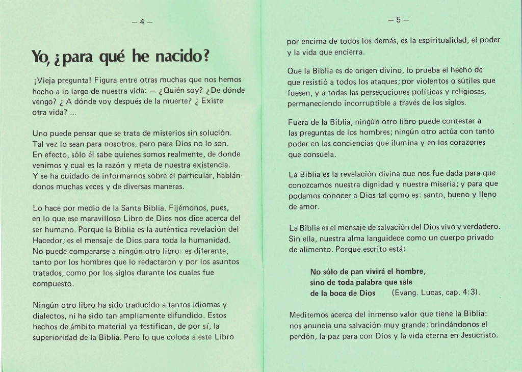Evangelistisches Heft, Ich - wozu wurde ich geboren? Spanisch