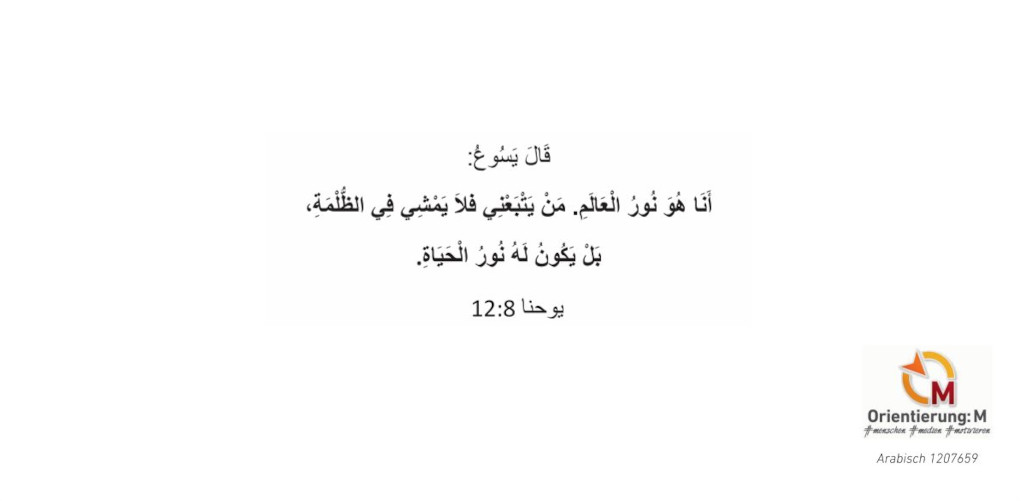 Auf der Rückseite steht der Bibelvers aus Johannes 8,12: "Jesus spricht: Ich bin das Licht der Welt. Wer mir nachfolgt, wird das Licht des Lebens haben."