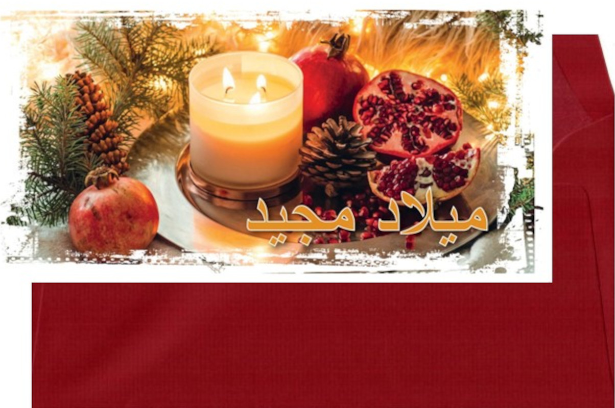 Weihnachtskarten mit rotem Umschlag, Arabisch - 5er Pack