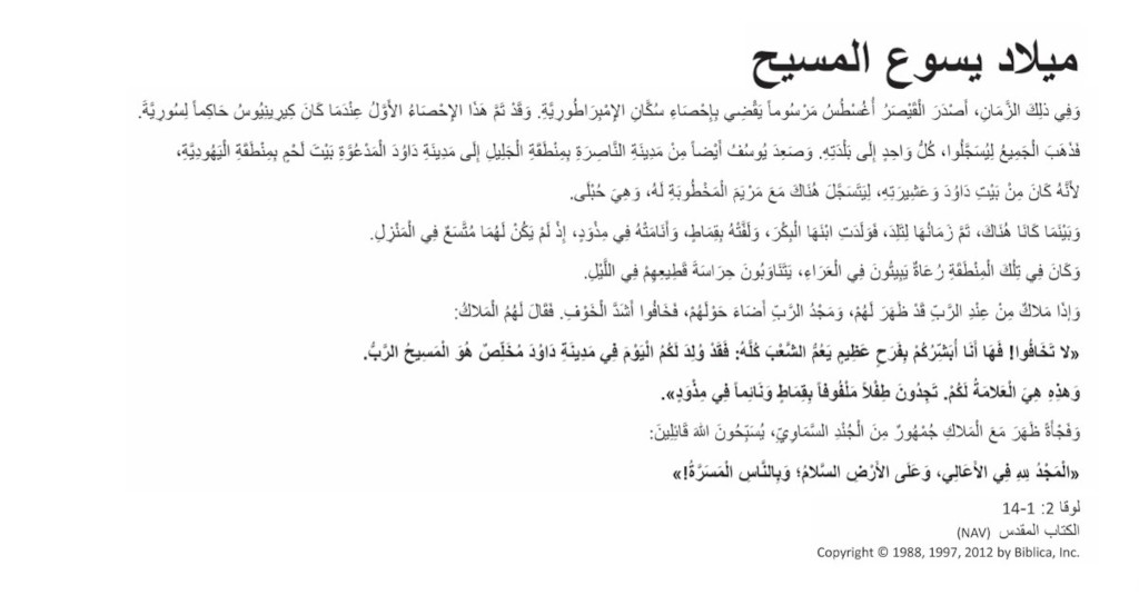Auf der Innenseite befindet sich die Weihnachtsgeschichte aus dem Evangelium nach Lukas 2, Verse 1- 14 und Platz für einen persönlichen Gruß.