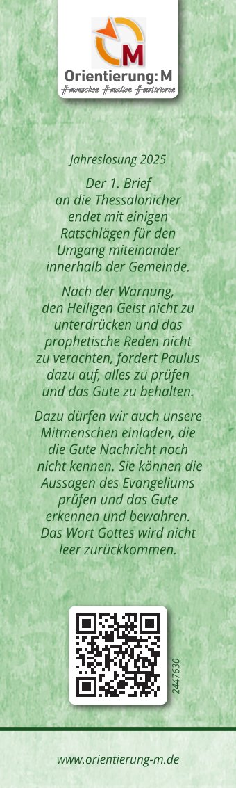Lesezeichen Jahreslosung 2025 (1.Th 5,21), 10er Pack