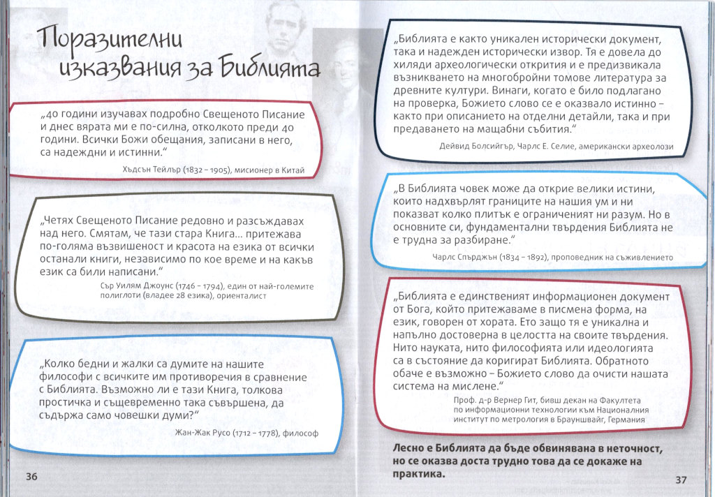 Verschiedene Erlebnisse mit der Bibel runden das Potpourri an Geschichten ab, z.B.: „Die eingemauerte Bibel“, „Die durchschossene Bibel“ u.a..