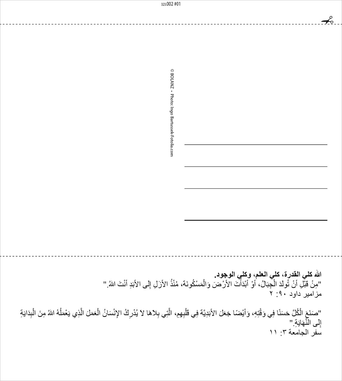 Postkartenkalender Leben für Dich 2025 in Arabisch. Mit ansprechenden Bildern und passenden Bibelversen. Auf der Rückseite erläutern weitere Bibelverse die Kernaussage und weisen auf Jesus Christus und die Erlösung durch ihn hin. Zum Aufstellen oder Aufhängen.